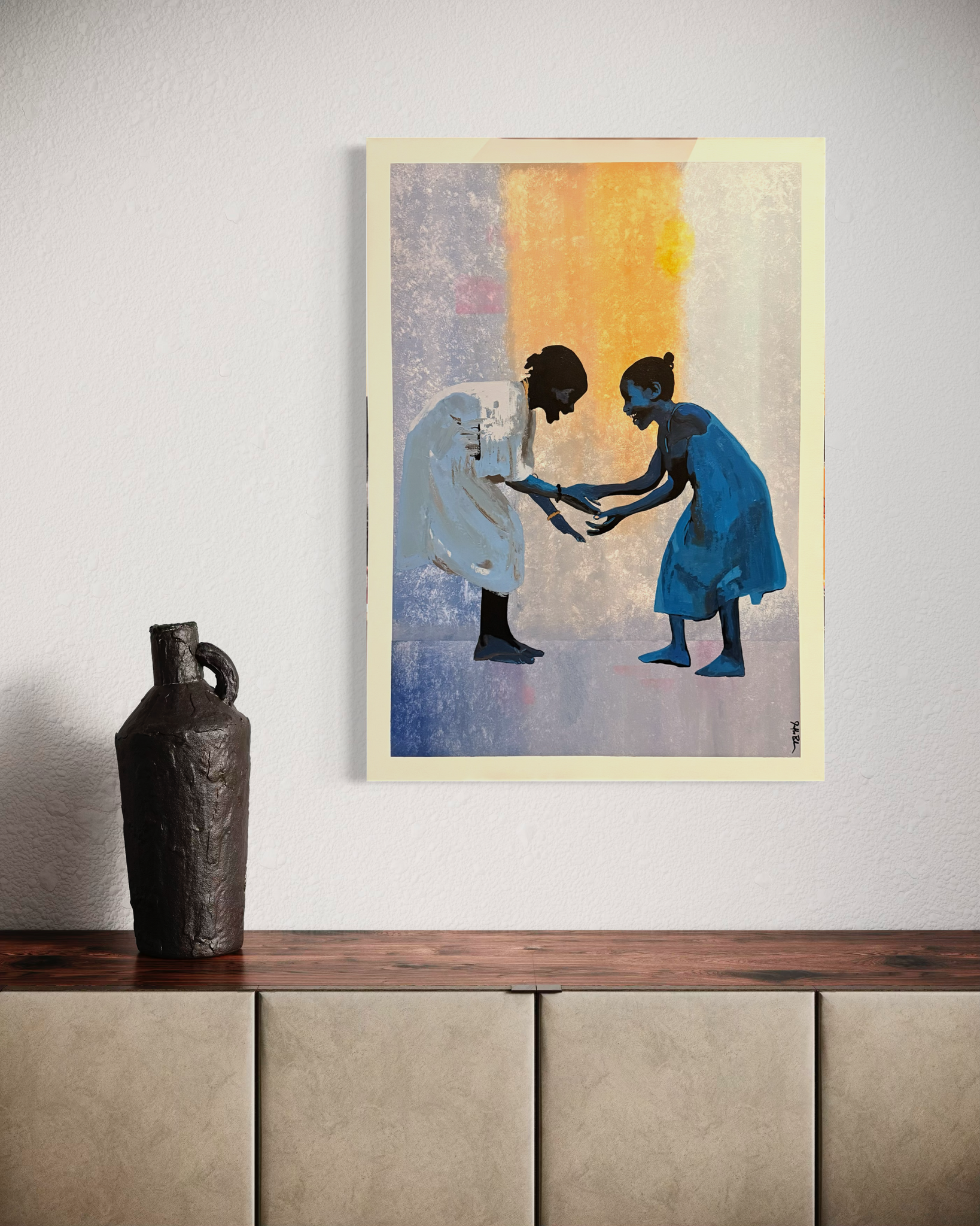 Hands Full of Faith captures a quiet but powerful exchange an intimate moment where belief is passed from one soul to another. Two figures lean toward each other, playing patty cake... hands extended, not in possession but in offering. The gesture speaks to trust, vulnerability, and the sacred act of receiving what cannot be seen but must be felt.